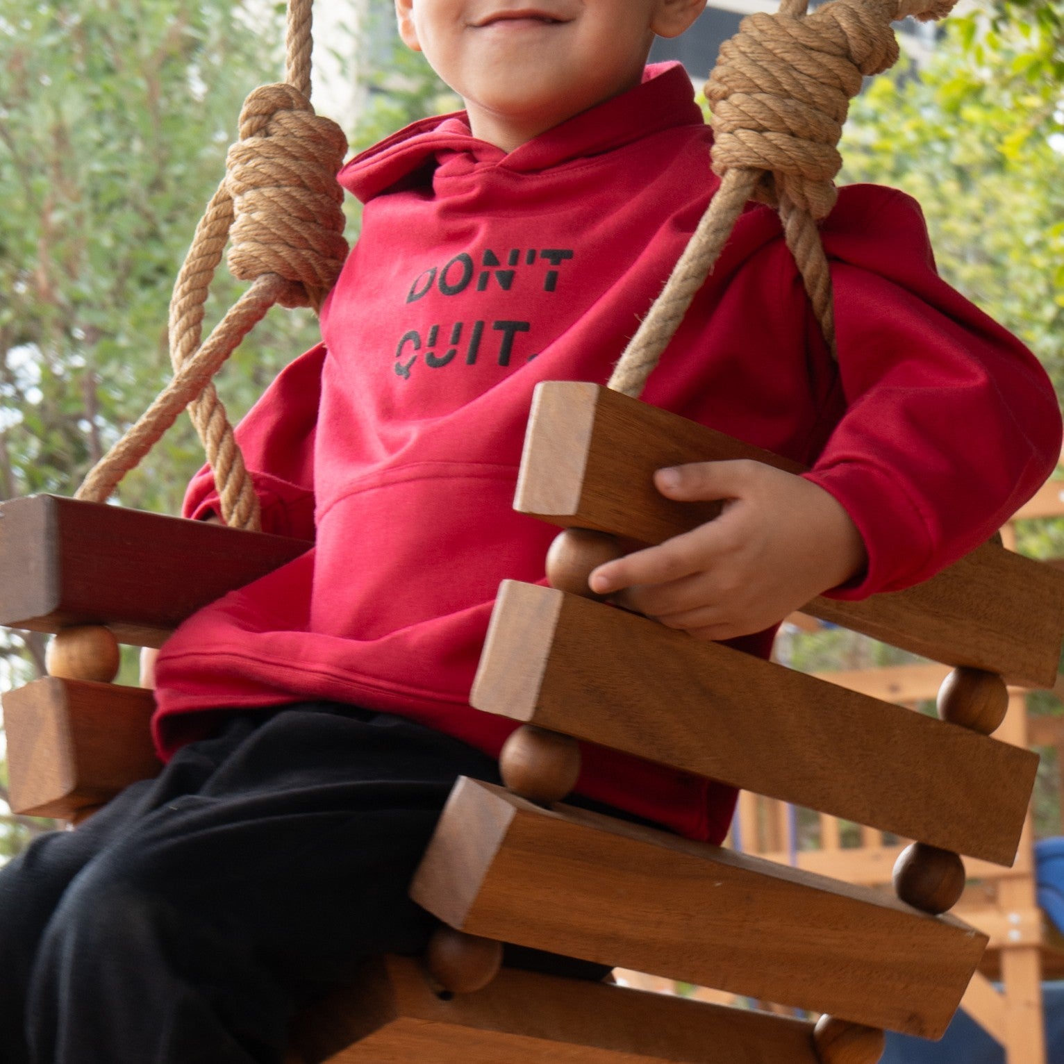 A bold cool toned red hoodie with a motivational print — designed to keep little go-getters inspired to keep pushing forward.