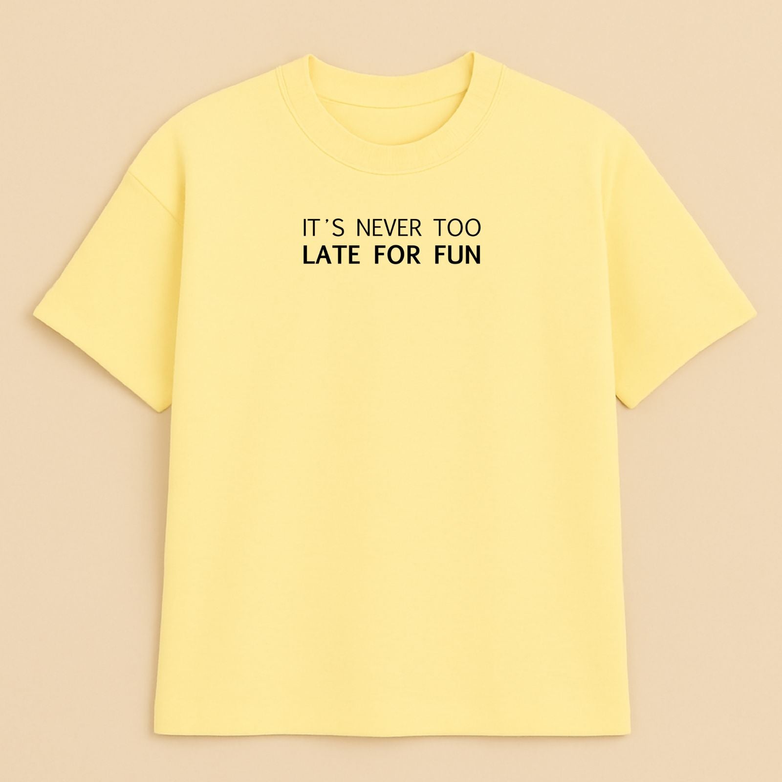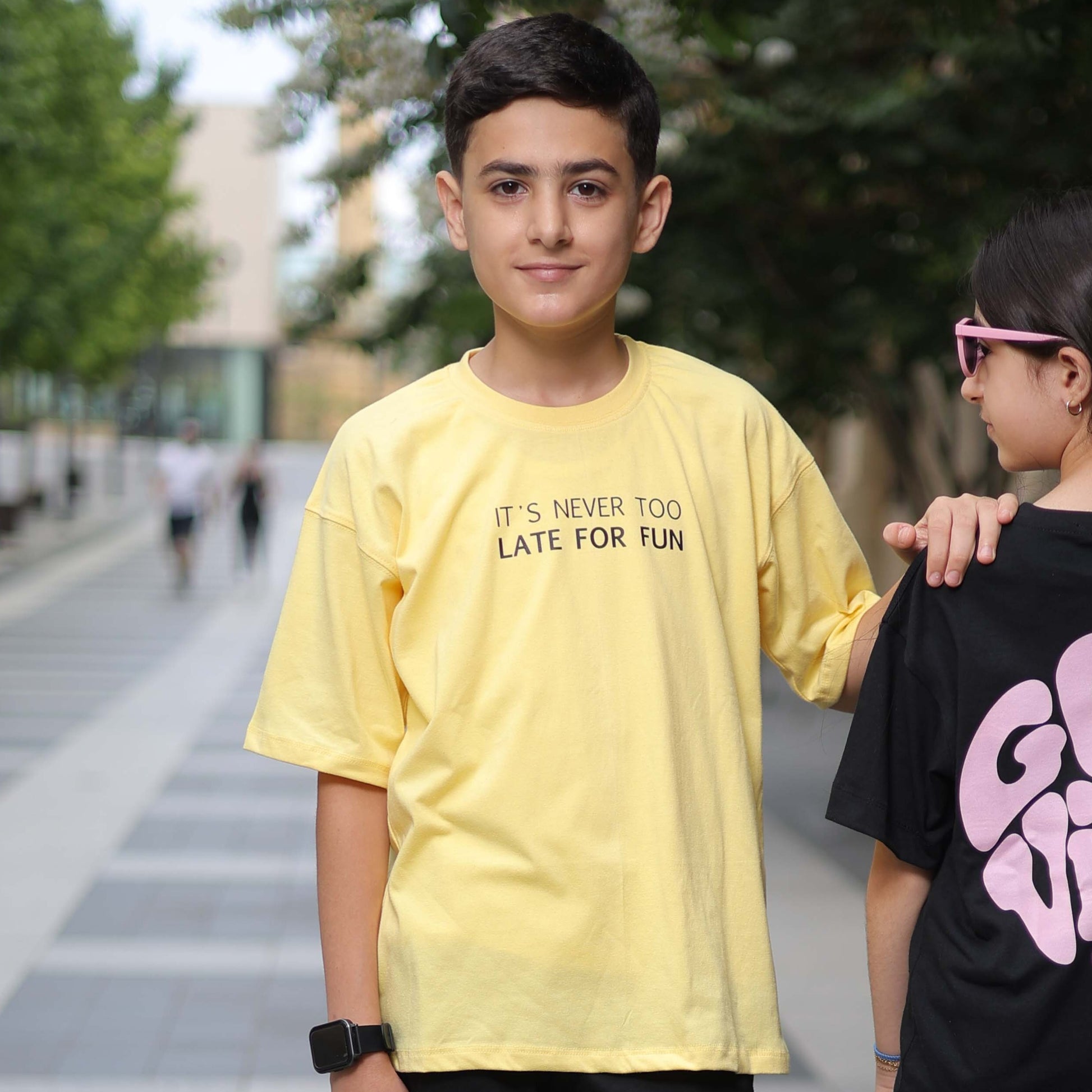 Bold and bright, this yellow tee reminds everyone that it's never too late for fun. For boys who keep the energy going all day.