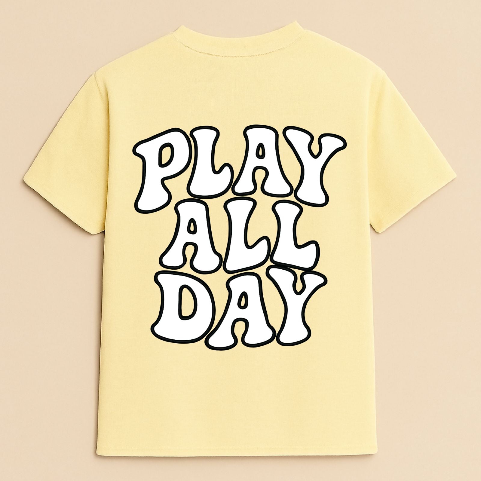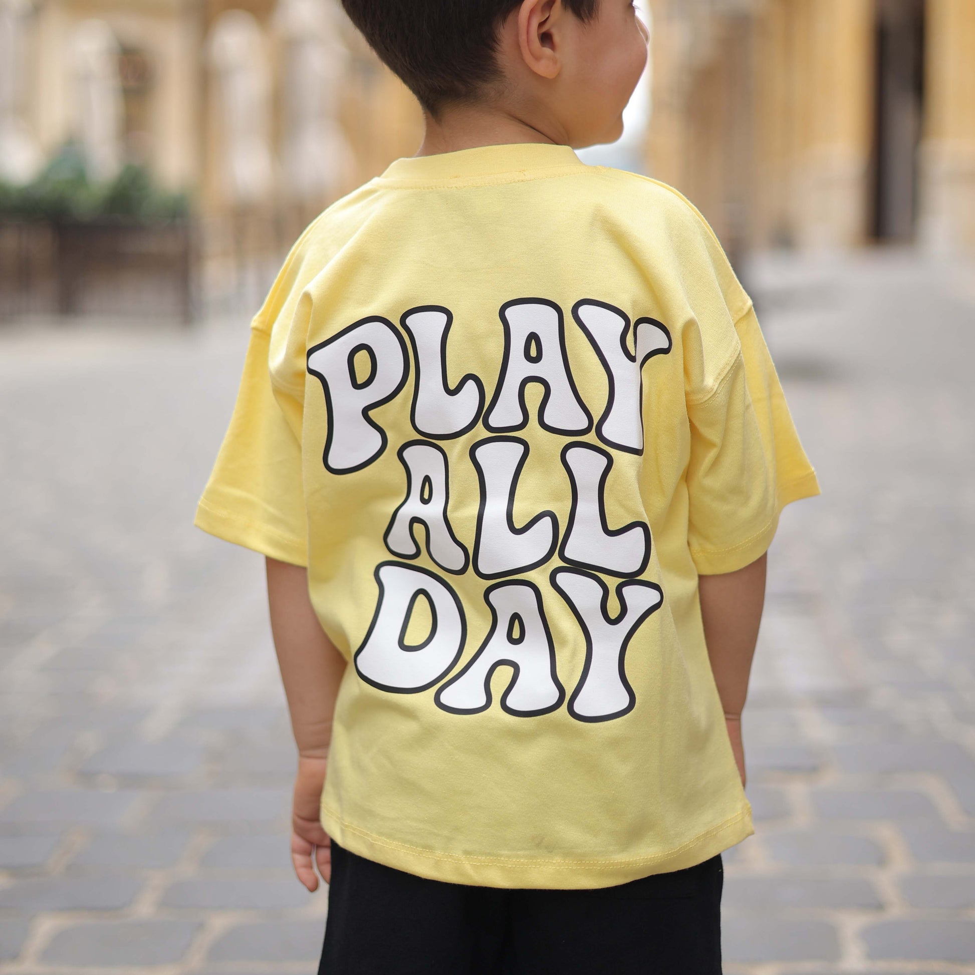 This bold yellow tee says it all – made for kids who never want the fun to end. Oversized comfort for non-stop play.