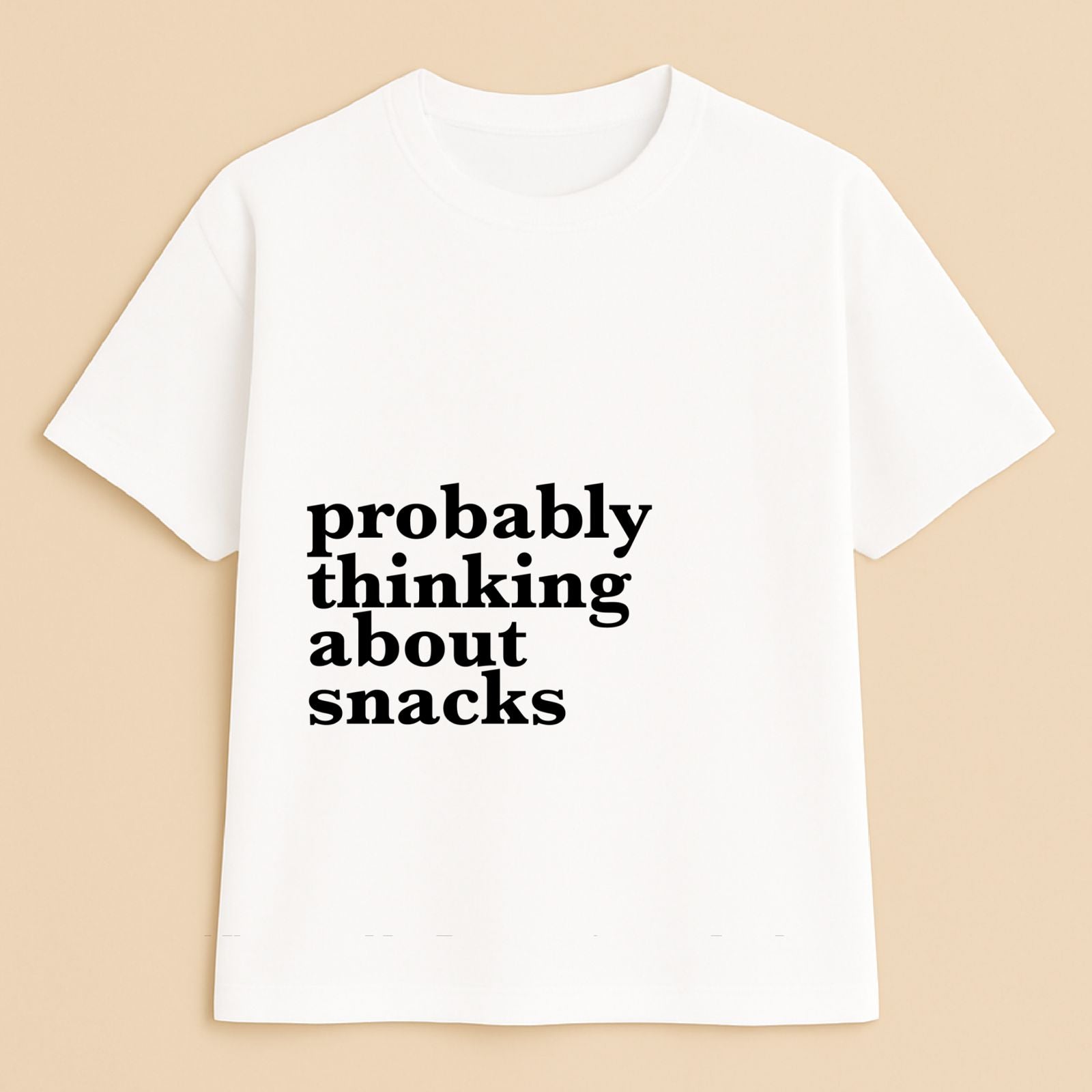 Snack lovers unite! This playful design says it all – for those who are always thinking about their next bite. A comfy tee for casual days, with a fun message that’s sure to make you smile.
